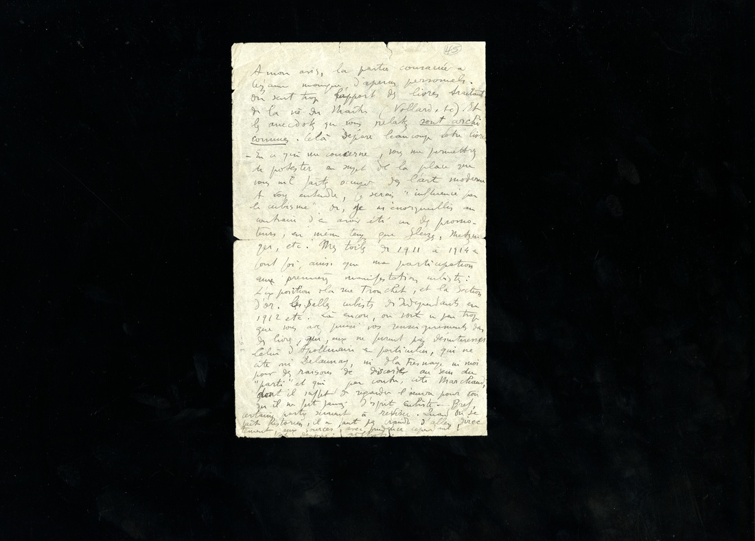Lhote, Andre (1885-1962). French artist, teacher, and writer on art. ALS. 2 pages. 1928. A fine letter mentioning Chagal, Cezane, Vollard, and defining his place in Cubism. "I really take pride in having been one of its promoters, along with Gleize, Metzinger, etc. My paintings prove it, as well as my participation in the first Cubist showings..." In his painting Lhote combined classic precision of composition and a free sensitive use of color. His greatest influence was exerted through his writings. Some minor edge splits, otherwise very good. From the Collection of John Herzog.