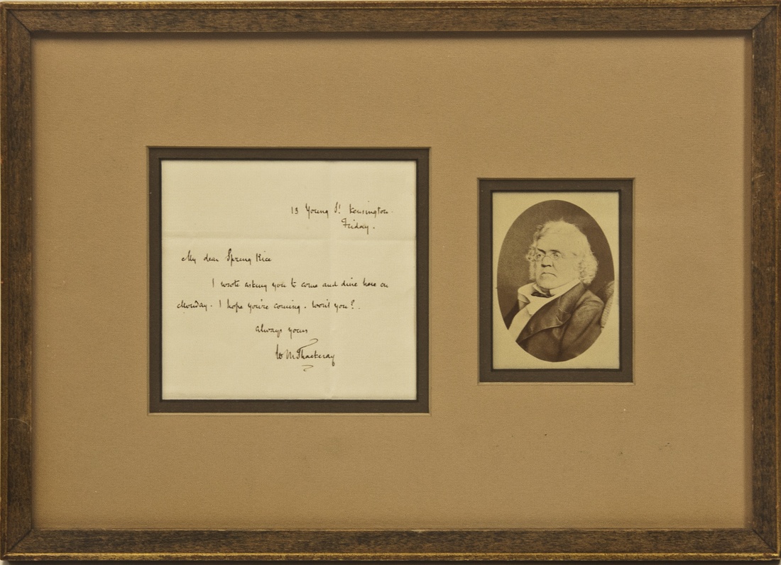 Thackeray, William Makepeace. ALS. To Spring Rice inviting her to dinner. Signed "W. M. Thackeray. Framed with a small cabinet card. Quite pleasing. From the Collection of Diana Herzog.