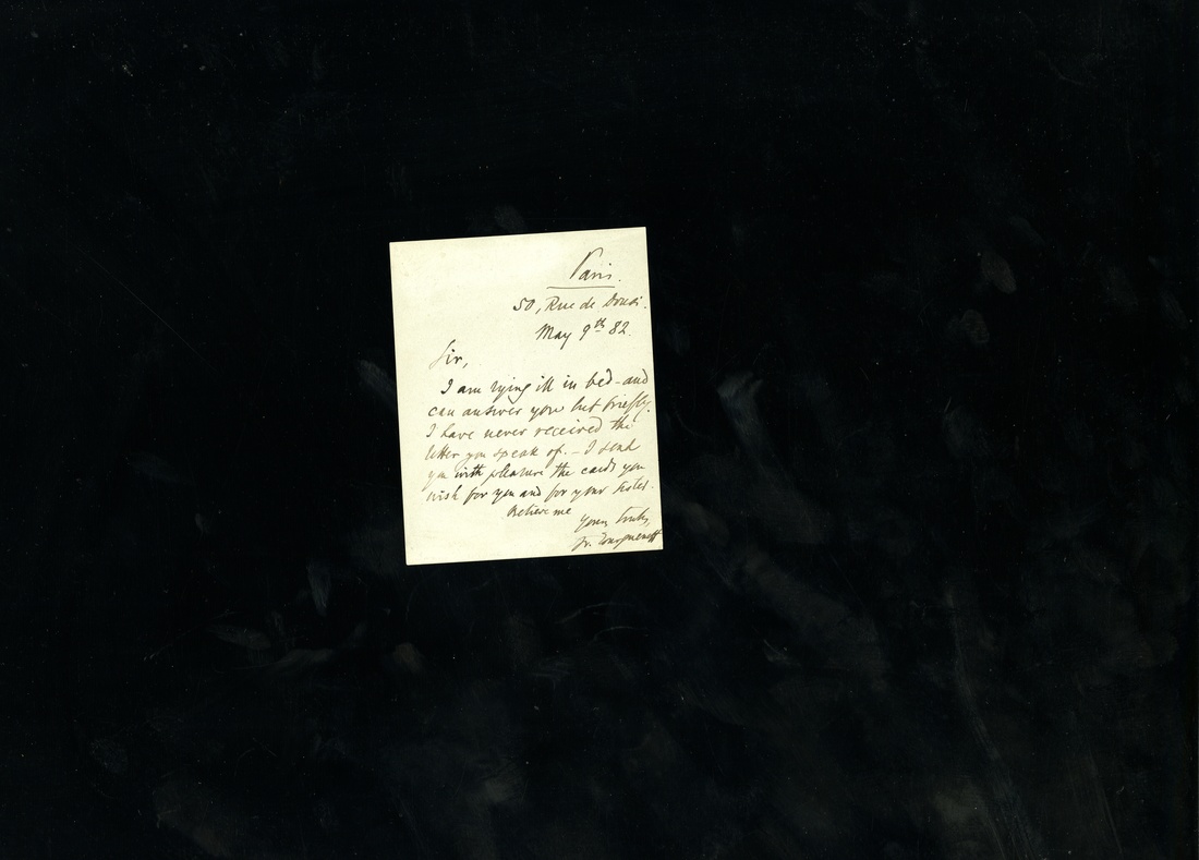 Tourguenoff, Ivan (1818-1883). Russian novelist, short story writer, and playwright. "A Sportsman's Sketches" was a milestone of Russian Realism, and his novel "Fathers and Sons" is regarded as one of the major works of 19th-century fiction. ALS 8vo. 1 page. Paris. May 9, 1882. "Sir, I am lying ill in bed and can answer you but briefly. I have never received the letter you speak of. I send you with pleasure the cards you wish for..." Signed "Iv. Tourgueneff." Very good condition. From the Collection of Diana Herzog.