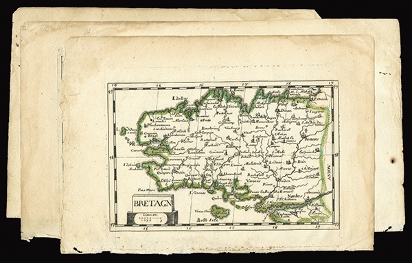 France. A group of four 17th Century Maps: Bretagne, Normandie, Provence et Comtat de Venaissin, and Gouvernement General dv Lionnois. Colored. 9 ¾ x 6 ¾". Light browning page edges. Good Fine. [4]