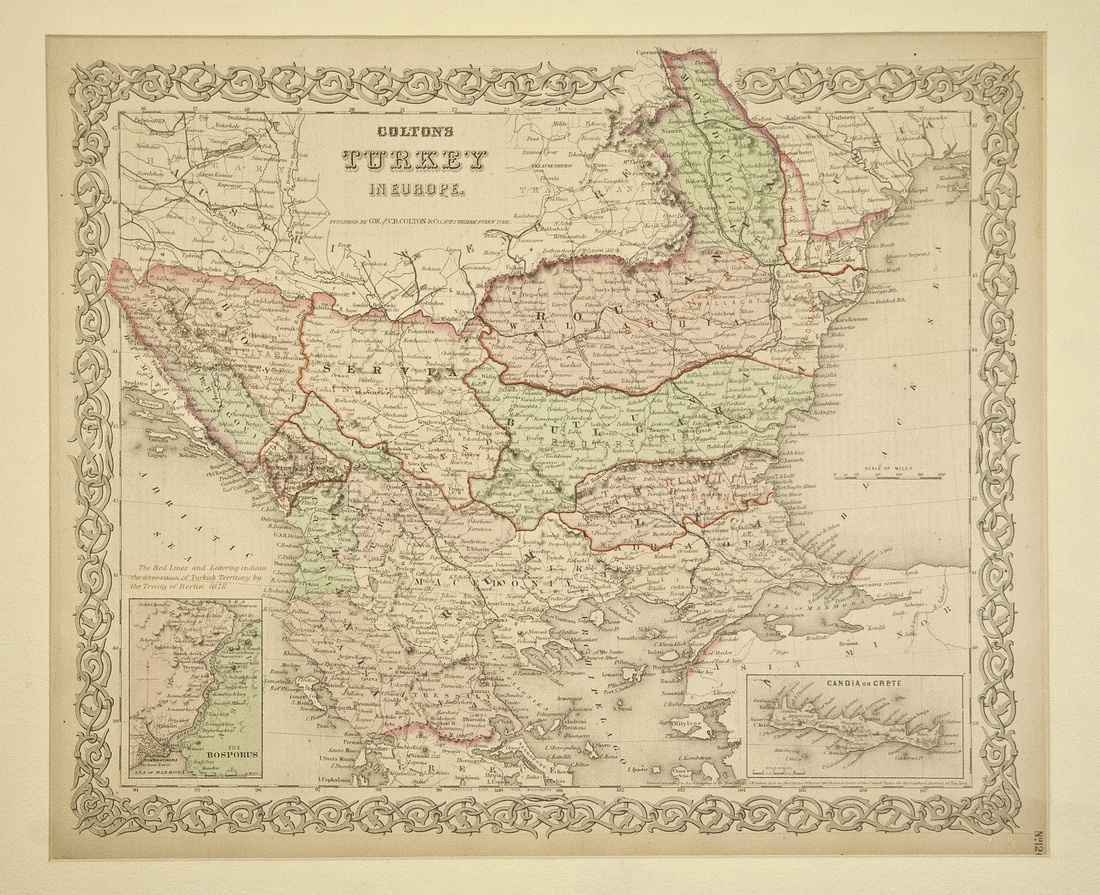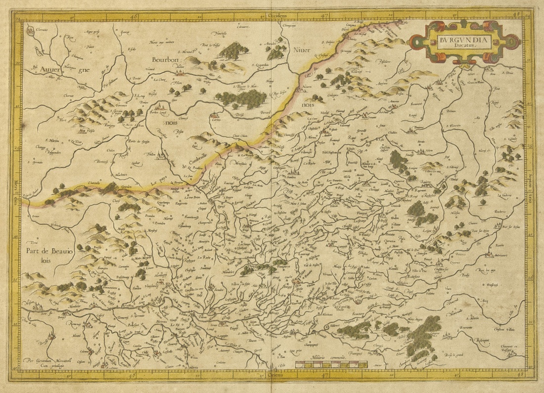 BVRGVNDIA Ducatus. By Gerardus Mercator and Jodocus Hondius, Amsterdam, ca. 1606-1610's. Original colors. 21 ½ x 18". Some typical light browning of paper in margins, overall a Fine map with good impression; also Coltons "Turkey in Europe". NY, 1859. 16 ½ x 13 ½". Handcolored. Fine. Matted. [2]