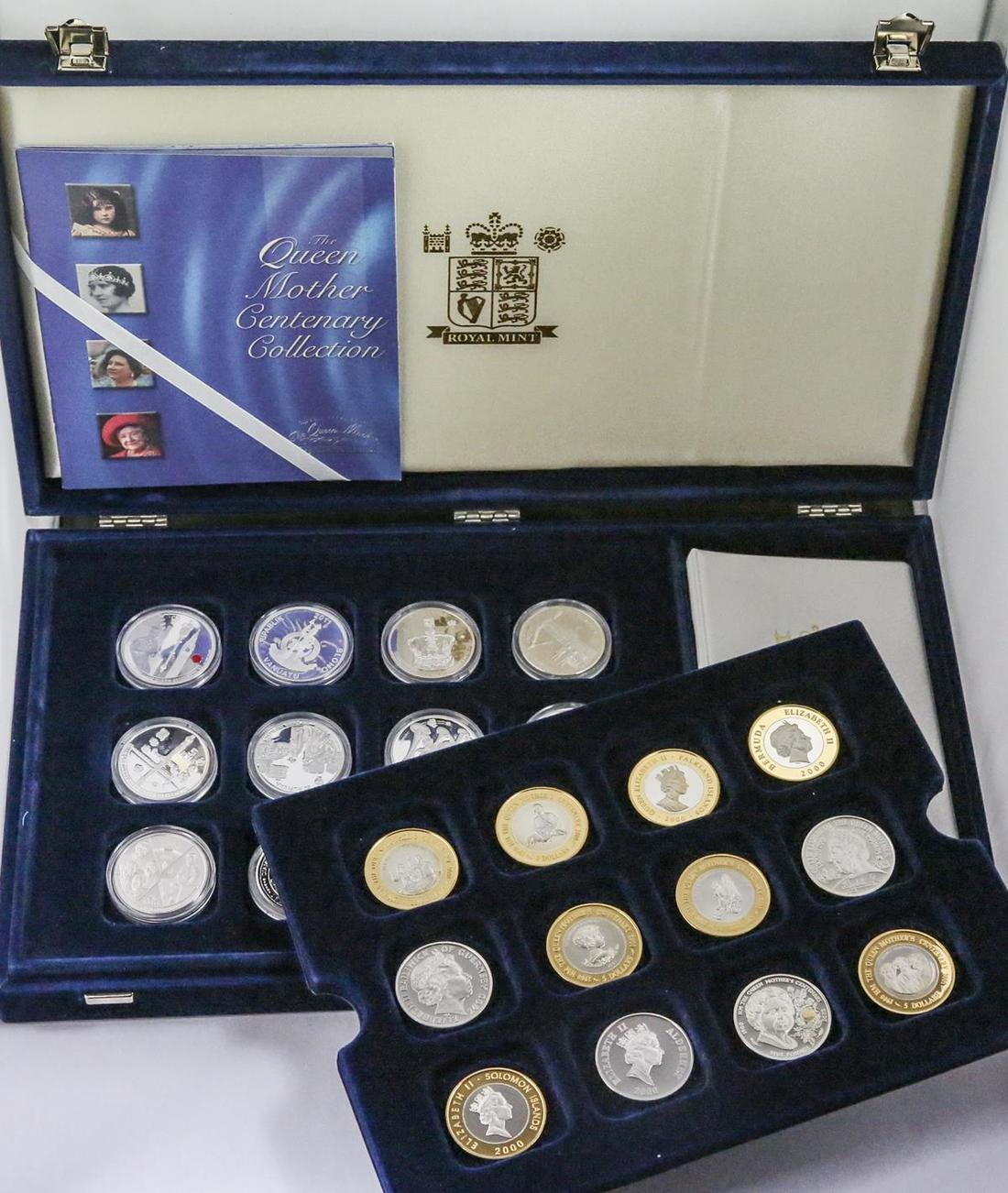 Great Britain. Elizabeth II (1952-). "Official Coin Collection in Honour of H.M. Queen Elizabeth the Queen Mother," comprised of 24 Silver Proof Crown and similar sized coins commemorating Royal events. In the original box of issue.