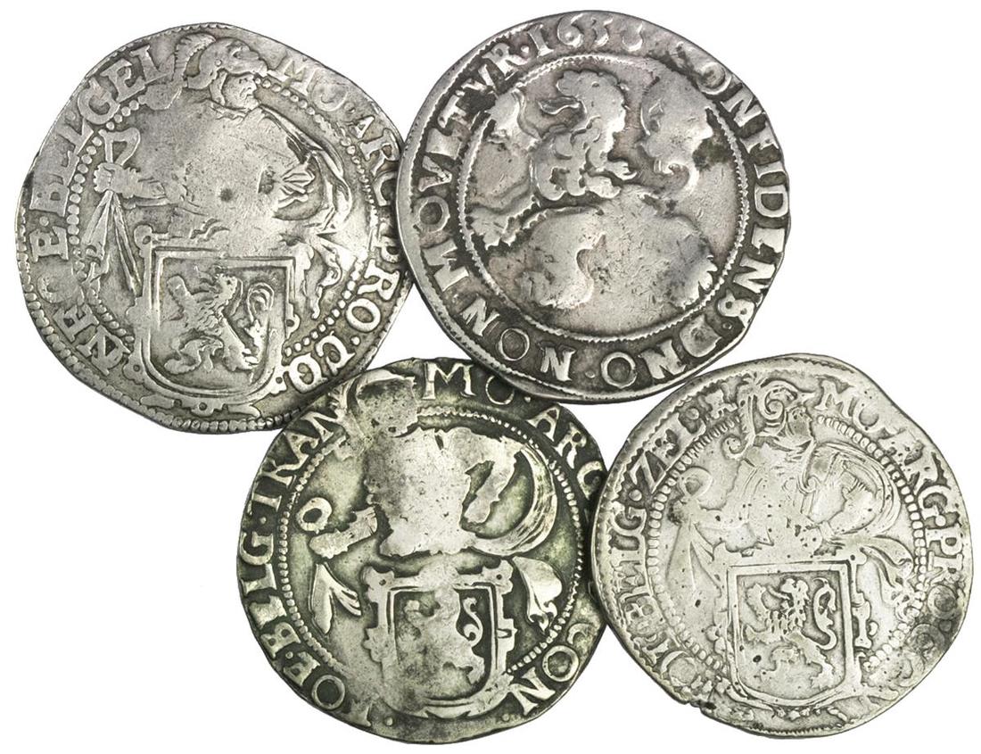 Netherlands. Quartet of Leeuwendaalder ("Lion Dollars"). Gelderland. 1638, 1648; Overyssel. 1639; and Zeeland. 1618. Typical strikes. Very Good-About Very Fine. (4)