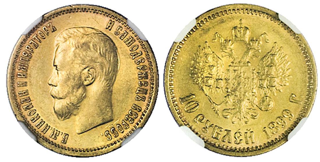 Russia. Nicholas II (1894-1917). 10 Rubles, 1899 EB. Bare head left. rev. Crowned Imperial eagle. Y.64. NGC AU 58.