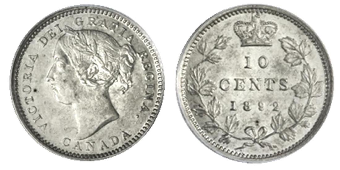 Canada. Victoria (1837-1901). 10 Cents, 1892. Wreathed head left. ANACS AU 50.