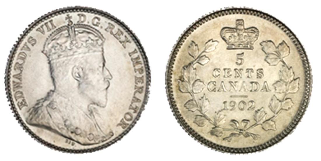 Canada. Edward VII (1901-1910). 5 Cents, 1902. KM 9. Near pristine surfaces. Choice Brilliant Uncirculated.