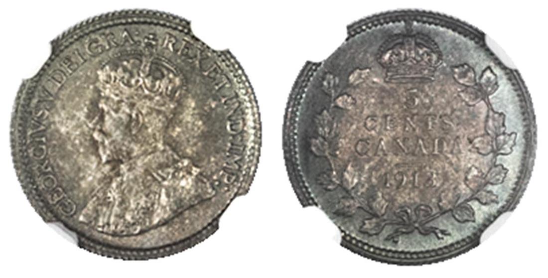Canada. George V (1910-1936). 5 Cents, 1913. KM 22. Attractively toned. NGC MS 64.