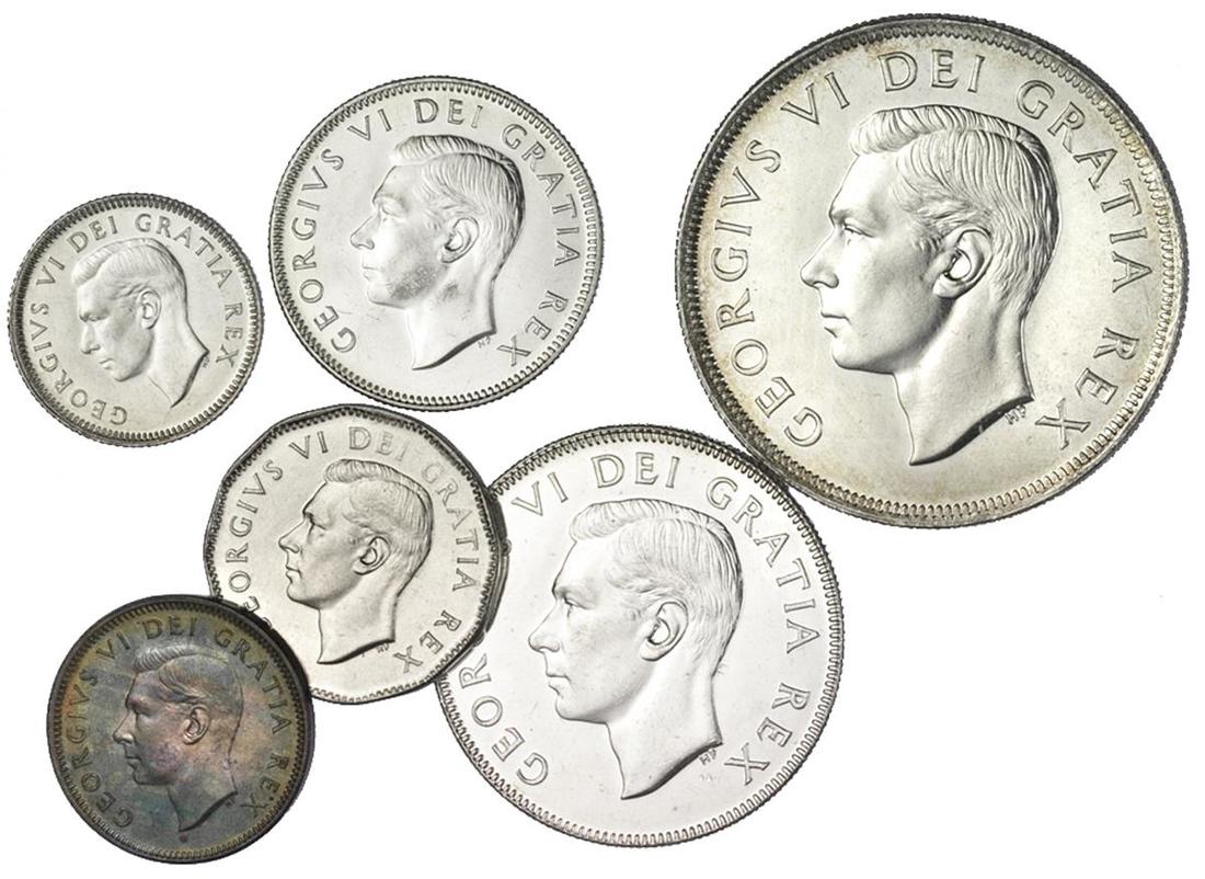 Canada. George VI (1936-1952). 1949 Set. Cent to Dollar. Prooflike surfaces. Gem Brilliant Uncirculated.