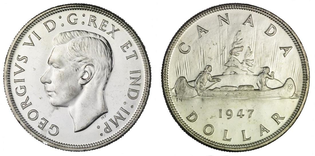 Canada. George VI (1936-1952). Dollar, 1947. Voyageur. KM 37. Prooflike surfaces. Gem Brilliant Uncirculated.