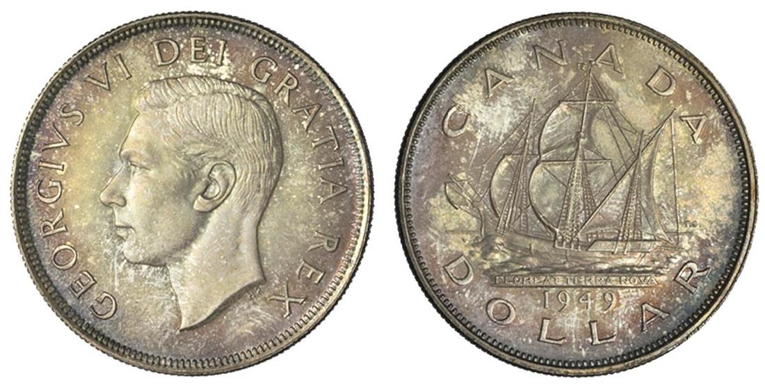 Canada. George VI (1936-1952). Dollar, 1949. Newfoundland. KM 47. Superbly toned, soft iridescent violet, turquoise and golden hues. Gem Brilliant Uncirculated.