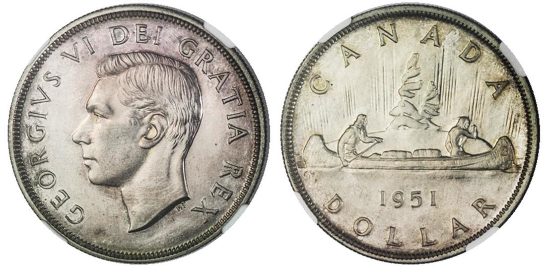 Canada. George VI (1936-1952). Dollar, 1951. 3 waterlines. Voyageur. KM 46. NGC SP 64.