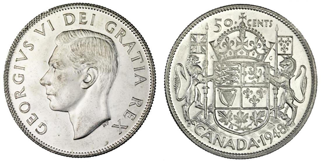 Canada. George VI (1936-1952). 50 Cents, 1948. KM 45. Nice and frosty, bold details. ICCS MS 63