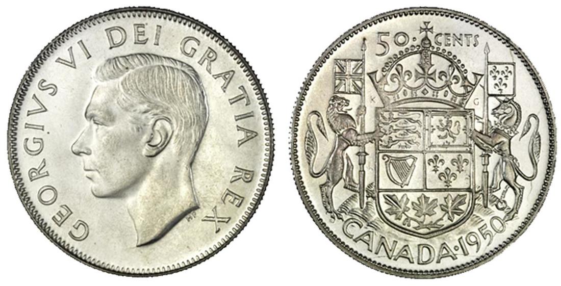 Canada. George VI (1936-1952). 50 Cents, 1950. No lines in "0". KM 45. ICCS MS 63. A Choice example.
