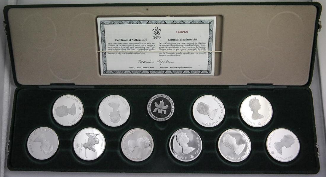 Canada. Elizabeth II (1952-). 1988 Calgary Winter Olympic Games 10-Piece Set in the Original Green Case. Brilliant Proof.