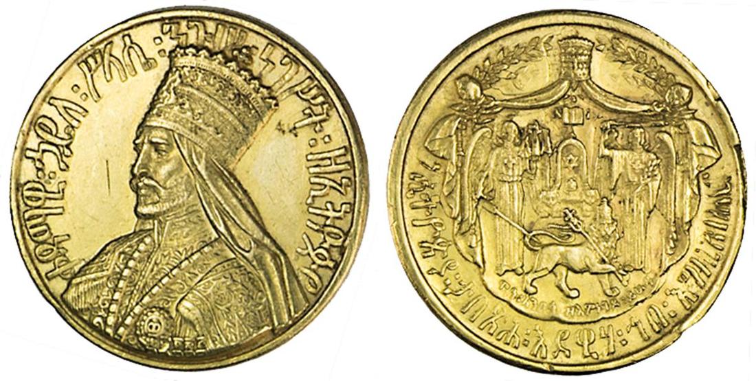 Ethiopia. Haile Selassie (1930-1936, 1941-1974). Medallic Gold ½ Talari, EE 1923 (1930). 15.27 gms. Coronation of Haile Selassie. Bust of the emperor in regalia ¾ left, rev. Draped throne flanked by angels, Lion of Judah before. KM X#18. A few small nicks and filemark on edge. Extremely Fine.