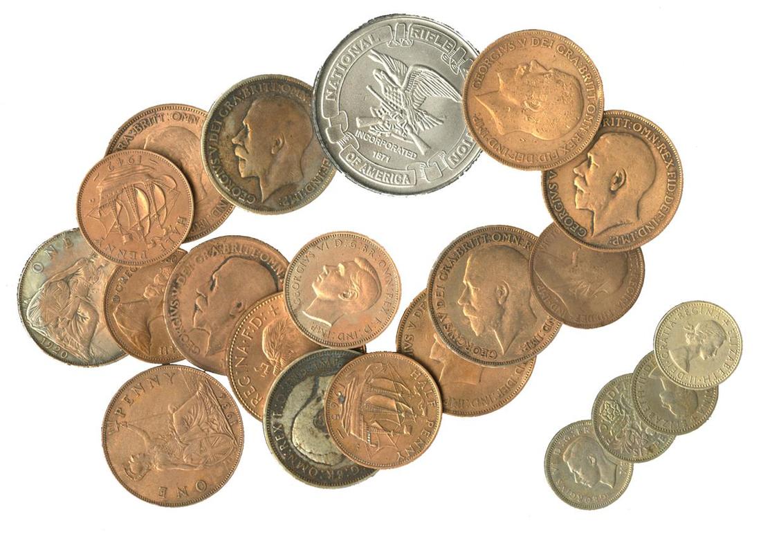 Modern British Coins and Miscellaneous. Includes a Victoria Halfcrown and a handful of British silver, mostly Threepence; Pennies and other minors; a Persian 5 Krans, AH 1320 and silver 10 Rials, a silver? Chain, others. Some of the AEs cleaned. Fair-Uncirculated. (100+)