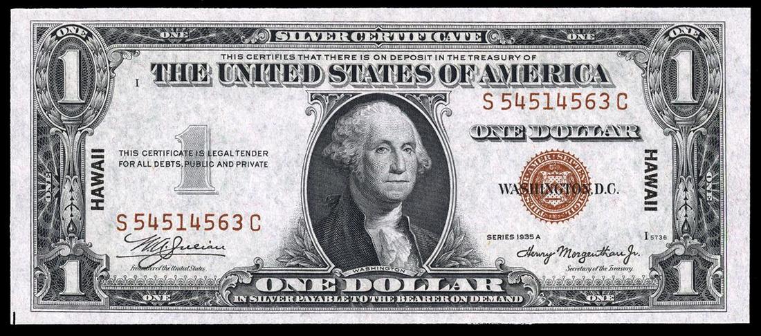 World War II Paper Money Pairing. 1) $1 1935A HAWAII Silver Certificate. Uncirculated. 2) Army Exchange Service, USAF, China Theater Ration Card EF.