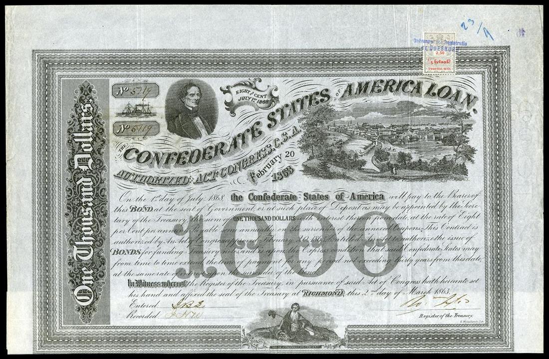 CSA. Act of February 20, 1863. $1000. Cr-125. VF.