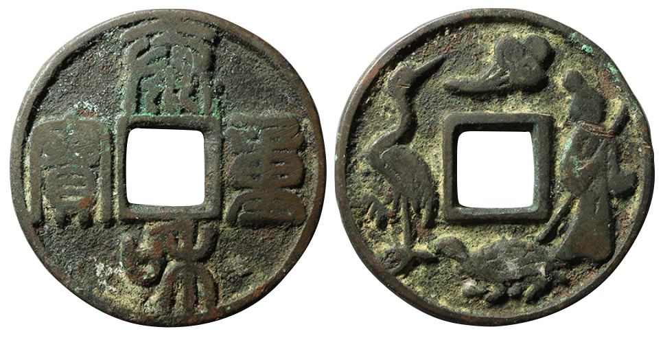 Tai He Zhongbao ????, Tai He tongbao, amulet of "Original Destiny:", with the reverse showing the stellar clerc of the "Original Destiny" ("Benming xingguan"), with the turtle and the crane, weight 29 g.