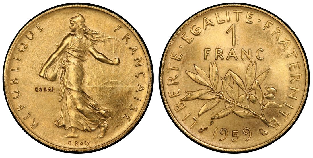 1 Franc Gold Pattern (ESSAI), 1959, " La Semeuse (the Sower)",