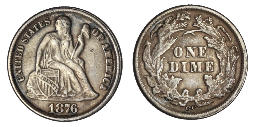 1873 Open 3 Seated Liberty Dime. EF-Almost Uncirculated.
