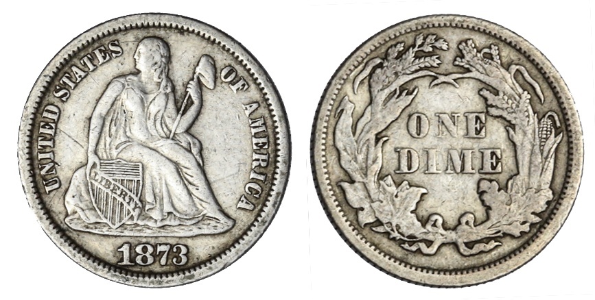 1873 Open 3 Seated Liberty Dime. Extremely Fine.