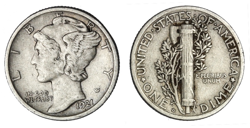 1921-D Mercury Dime. Very Fine.