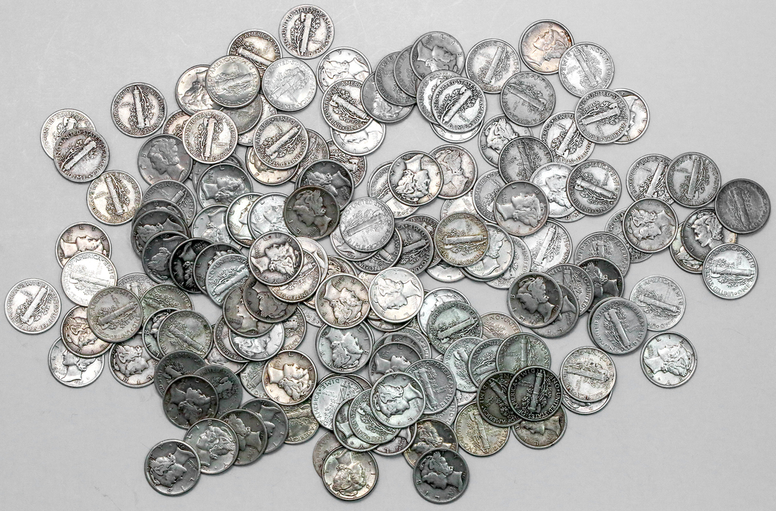Mercury Dime Grouping. A nice mixture of common dates and an occasional semi-key. No 1916-D or 1921 Mercury Dimes, but this lot should be seen. A quick glance reveals 1923-S VF-EF, 1928-S EF, 1931-S VF-EF and many other min marked dates in the teens, twenties and thirties. Sold as is, no returns. [160+ pieces]