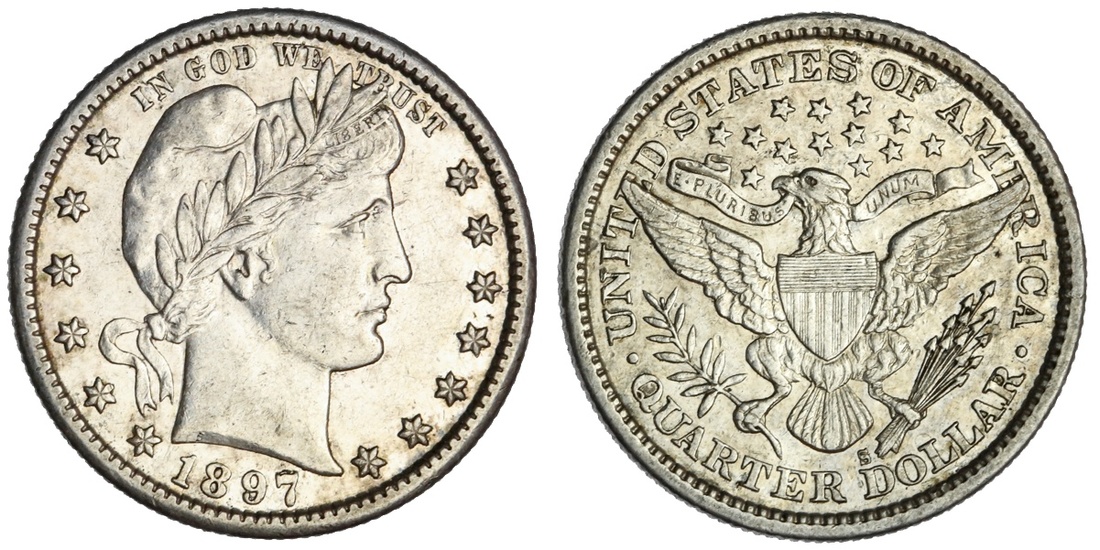 1897-S Barber Quarter. PCGS AU55.