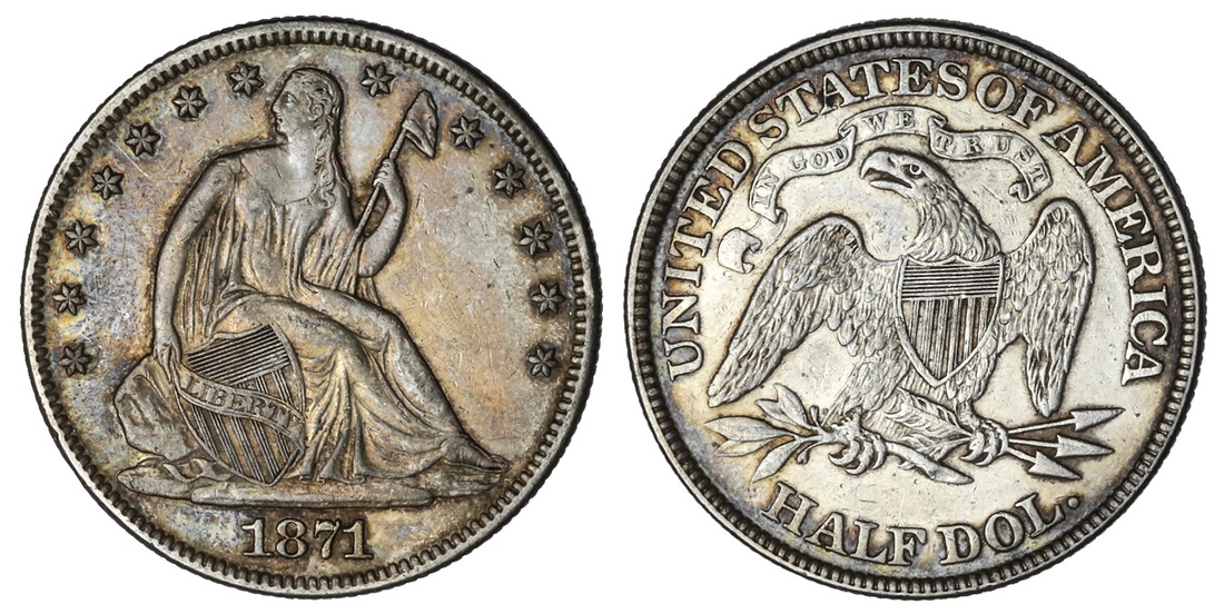 1871 Seated Liberty Half Dollar. Choice Extremely Fine.