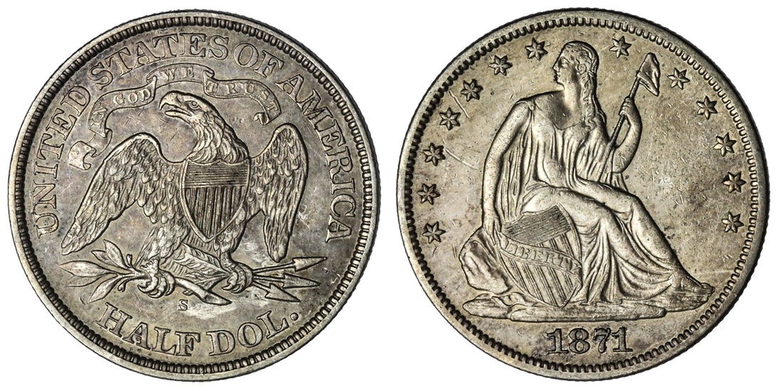 1871-S Seated Liberty Half Dollar. Extremely Fine.