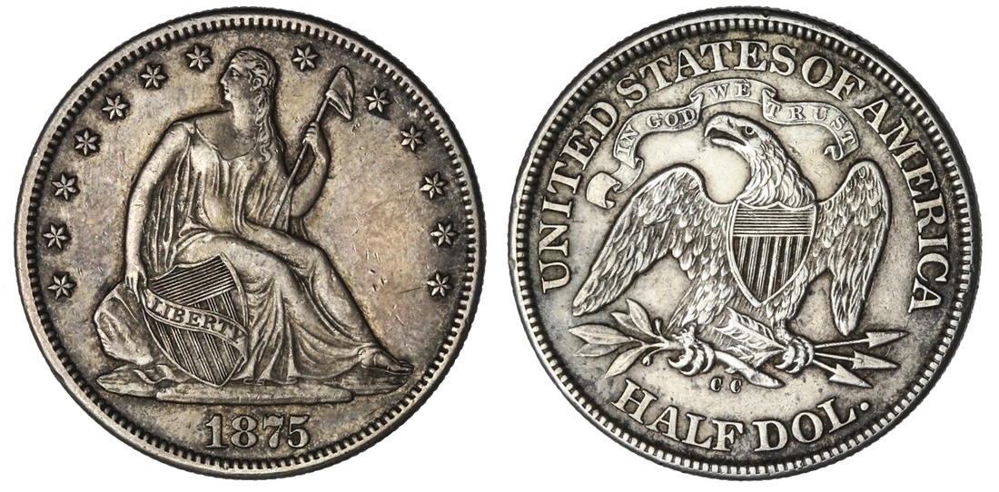 1875-CC Seated Liberty Half Dollar. Extremely Fine.