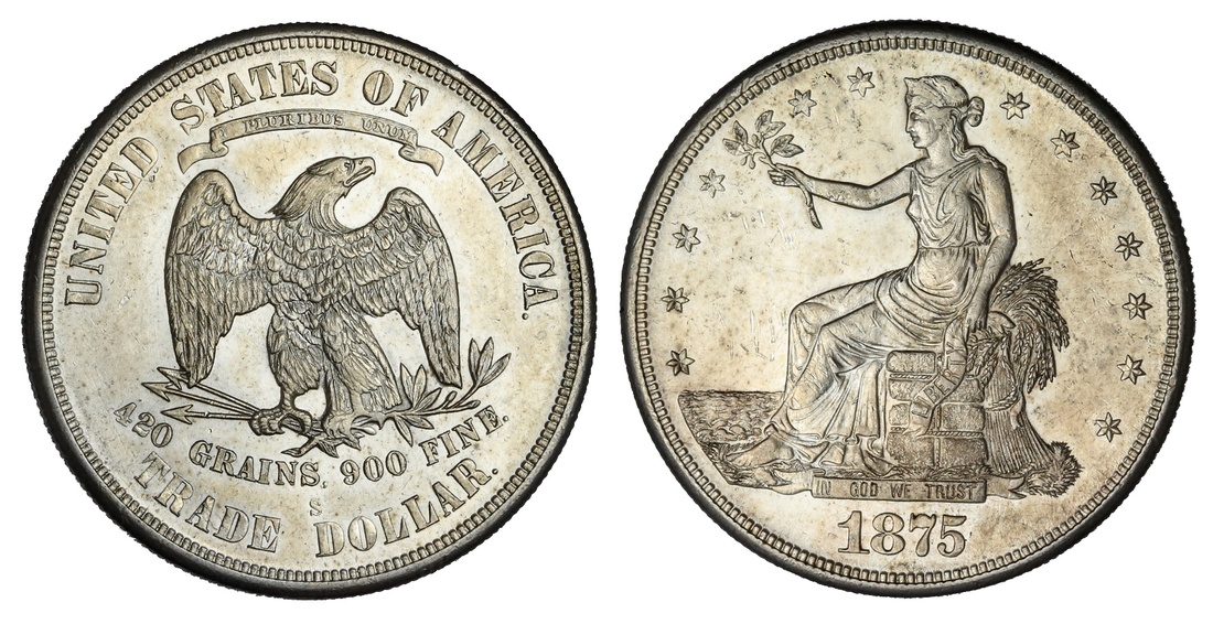 1877-S Trade Dollar. Extremely Fine. Minor rim bruise.