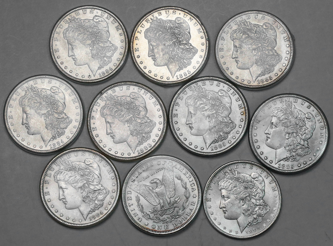 Selection of Choice Uncirculated New Orleans Mint Morgan Dollars. 1883-O(2); 1884-O(4) and 1885-O(4). [10]