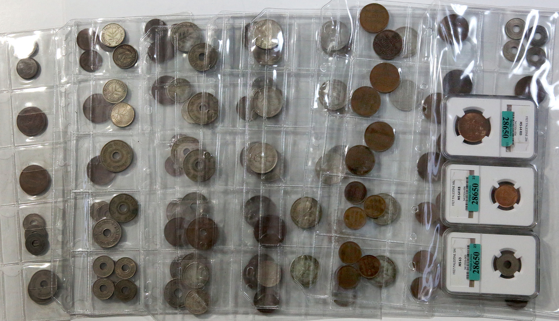 Palestine. British Mandate. Collection -- most, if not all, dates (with some duplicates) except for the extremely rare 1947 emission. Fine-Extremely Fine; and NGC encapsulated 1927 Mil and 2 Mils, MS 64 RB and RD; and 5 Mils, MS 63. (128)