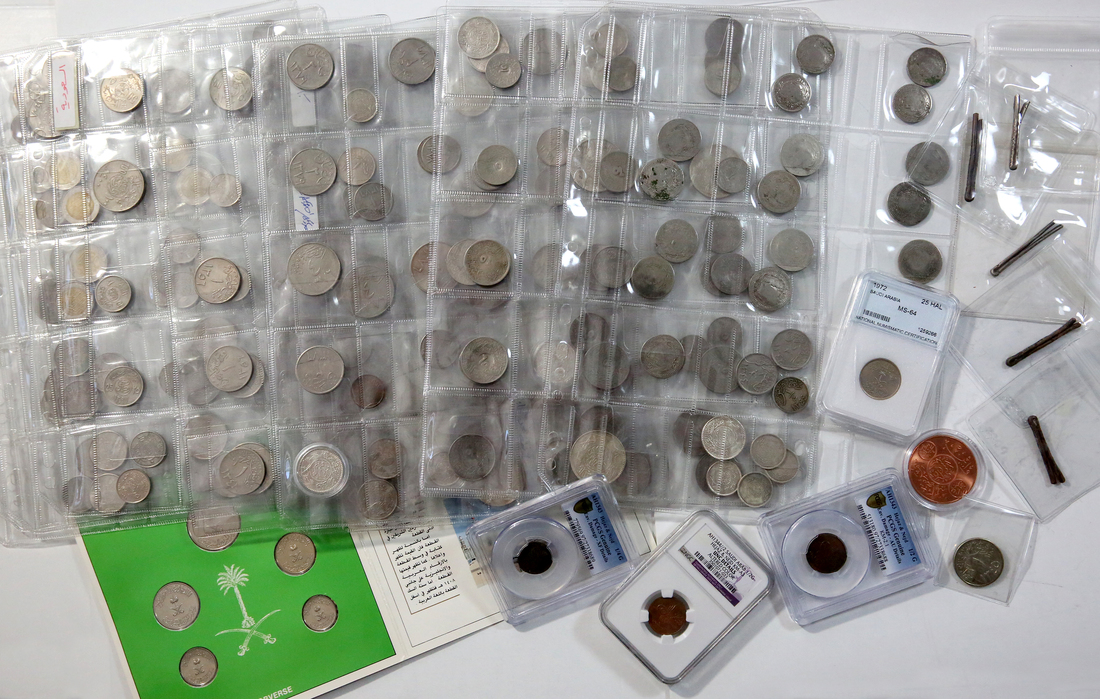 Saudi Arabia. Large assortment covering the spectrum of the kingdom's coinage from the Hejaz & Nejd period to Saudi Reform coinage. Includes: 17th century Silver Larins (6) used in the Gulf - all appear to be Bijapur types; al-Hejaz c/m on Ottoman 40 Para (13) and 20 Para (4); Hejaz & Nejd ¼ Qirsh, AH 1343. PGCS Genuine env. damage - XF Details; ¼ Qirsh, AH 1343. PCGS Genuine env. damage - AU Details; ½ Qirsh, AH 1344 year 2. NGC Unc Details - Altered Color; 25 Halala AH 1392 error-denomination in masculine gender, NNC MS 64; Riyals (6), other silver (16); Fantasy Pattern Ghirsh, AH 1345 (X# Pn1); '65' c/ms (23), copper fantasy Hejaz Riyal (KM X1). Fine-Brilliant Uncirculated. (Approx. 228)