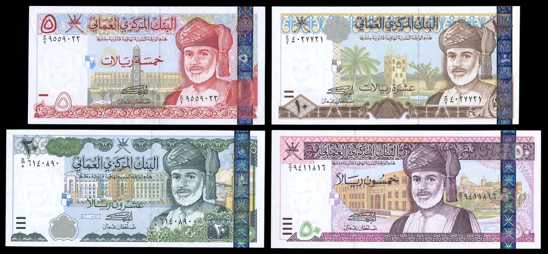 Oman. Sultanate. Central Bank of Oman. AH 1420/2000 Issue Complete. 5, 10, 20 and 50 Rials. P-39-42. Sultan Qaboos b. Sa`id at right, various scenes at center; holographic strip at far right. The first EF, the last AU, the other two Uncirculated. [4]