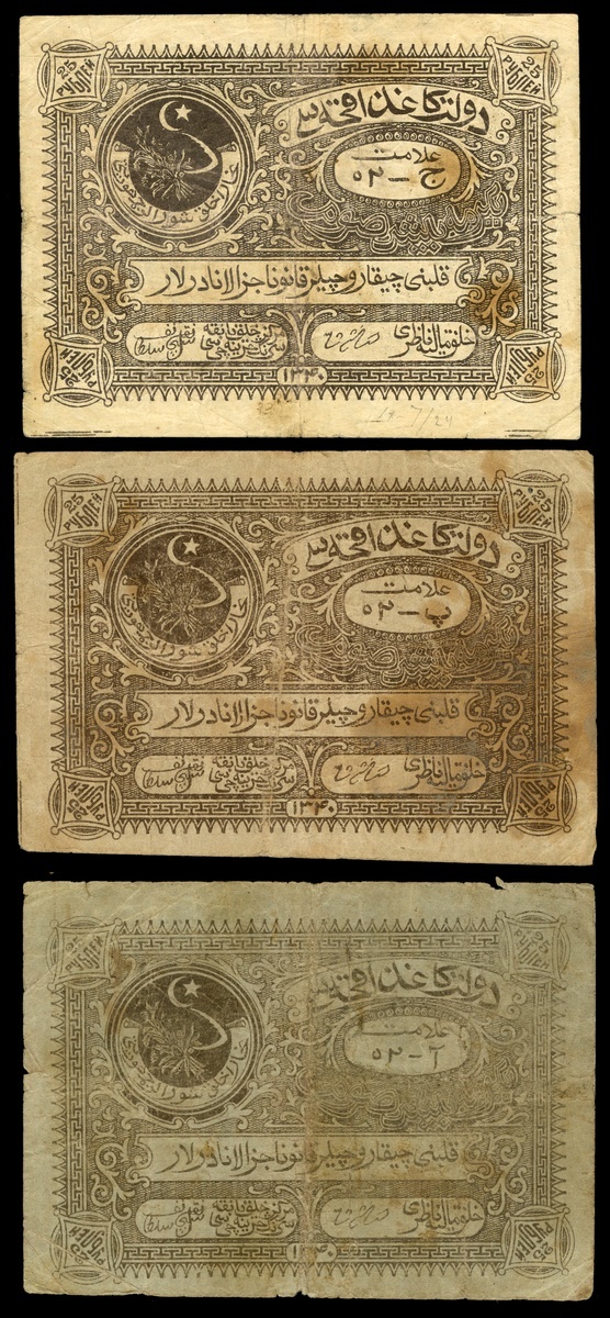 Russian Central Asia. Bukhara. Soviet Peoples Republic. Trio of 25 Sum - Rubles. AH 1340 - 1922. P-S1044. Crescent and star above sickle and branch bundle at upper left. Fine-VF. [3]