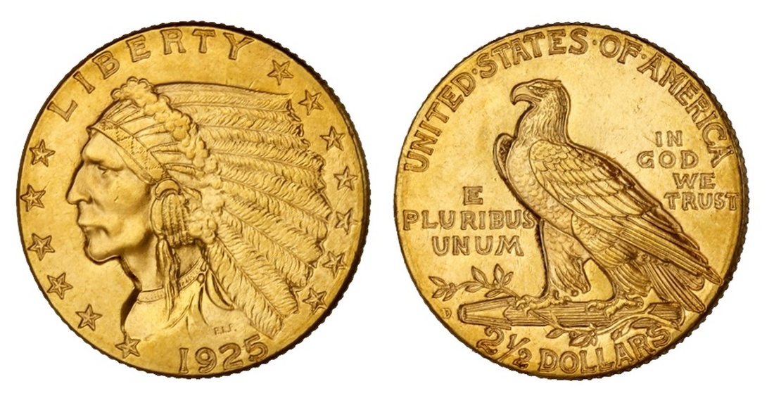 1925-D $2 1/2 Indian. Choice Brilliant Uncirculated.