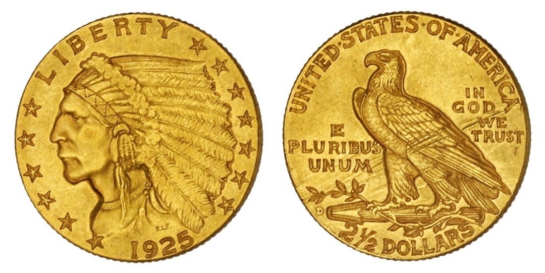 1925-D $2 1/2 Indian. EF. Scratches.