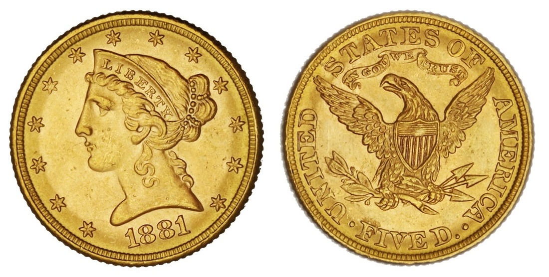 1881-S $5 Liberty. PCGS MS64+.