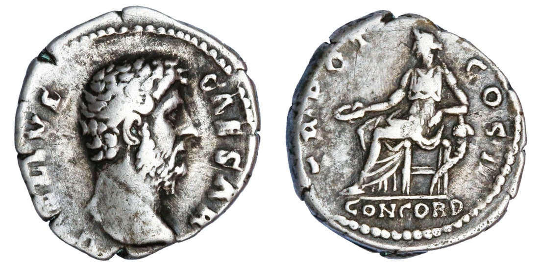 Roman Imperial. Aelius, Caesar (136-138), AR Denarius, 137. 3.14 gms. Bare head right, rev. Concordia enthroned left, holding patera. RIC 436, RSC 1. Some hairlines upper reverse field. Very Fine.