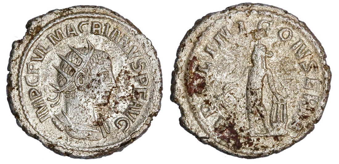 Roman Imperial. Macrianus, usurper (260-261). Billon Antoninianus, first emission. Samosata. 4.59 gms. Radiate, draped and cuirassed bust right, rev. Apollo standing left holding branch and lyre. RIC 6, RSC 2. Roughness, particularly on reverse. Near Extremely Fine.