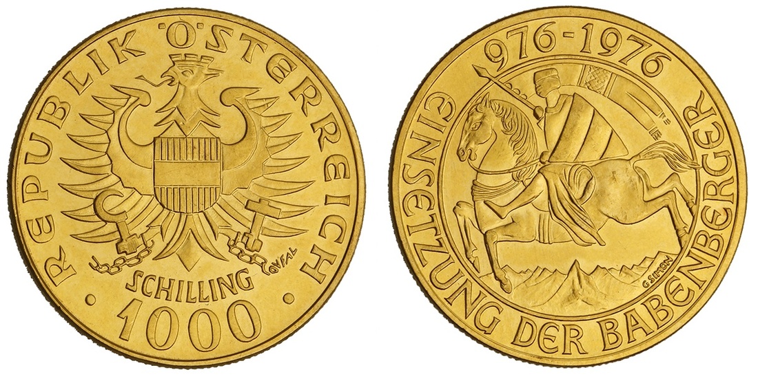 Austria. Republik. 1000 Schilling, 1976. Millenium of the Babenberg Dynasty. Seal of Duke Friedrich II - knight on horseback charging left. Choice Brilliant Uncirculated.