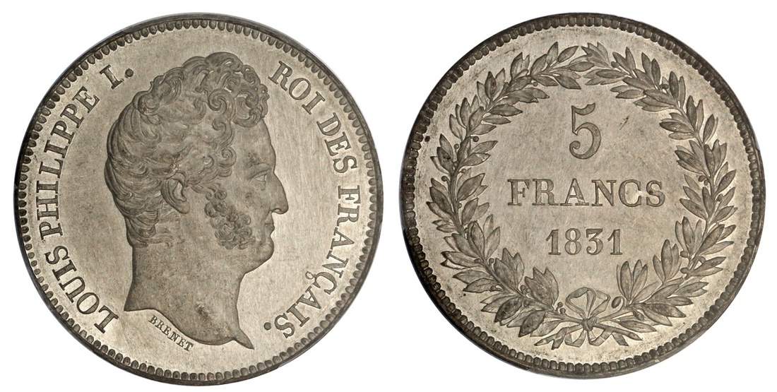 France. Louis Philippe (1830-1848). Essai 5 Francs BRENET, 1831 A. White Metal. By Brenet. Bare head right, rev. Value and date within wreath. Maz-1065 (R1). PCGS Genuine. Cleaning - UNC Details.