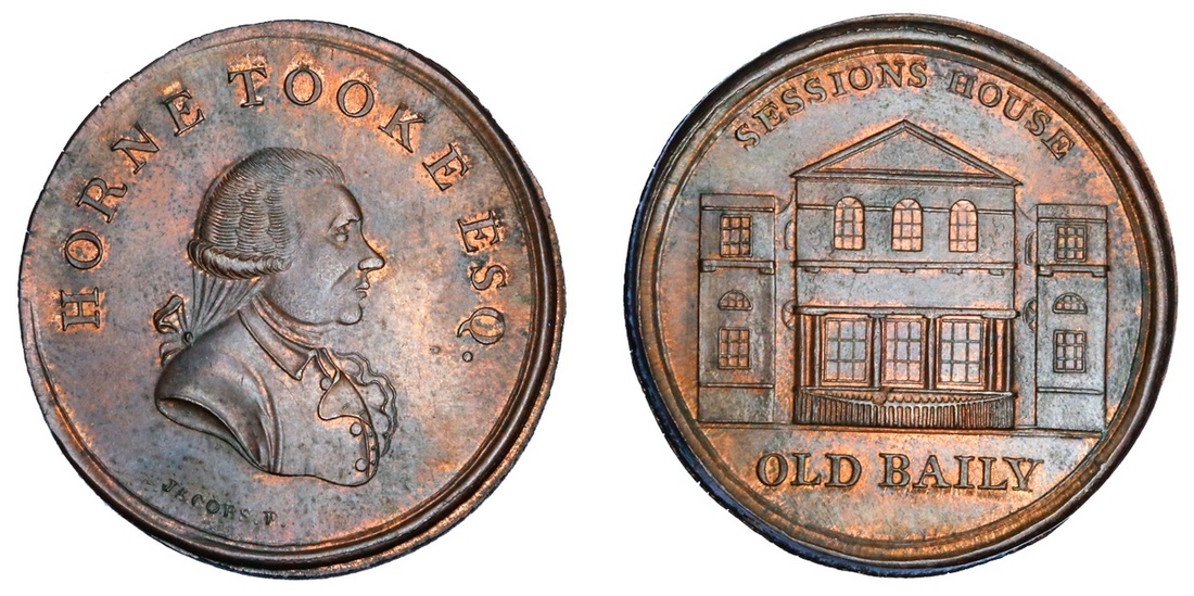 Great Britain, Spence's, copper Halfpenny token, bust of Tooke right, horne tooke esq., jacobs. f. below, rev. view of public building, sessions-house old baily, edge plain (D&H 878), uncirculated with lustre