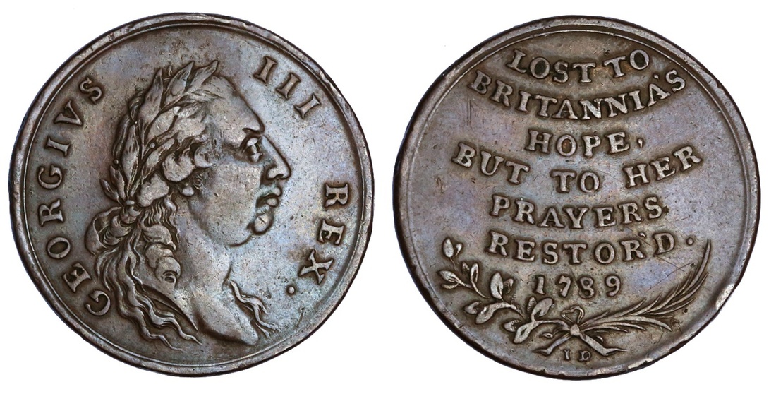 Great Britain, Middlesex, National Series, copper Halfpenny token, 1789, laureate bust of George III right, rev. lost to britannia's hope but to her prayers resotr'd, edge plain (D&H 932), good very fine