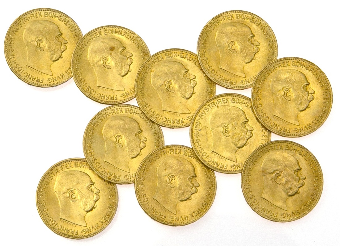 Austria. Franz Josef (1848-1916). A fifth lot of 10 Restrike 20 Corona, 1915. Bare head right. Fr.509R, KM 2818. Brilliant Uncirculated-Choice Brilliant Uncirculated. (10)