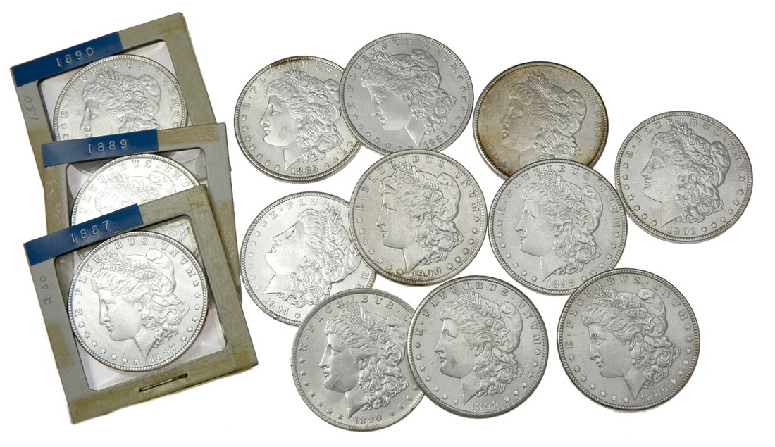 A BU to Choice BU Morgan Dollar Selection, 1885 to 1904. 1885, 1886(2), 1887, 1889, 1890, 1890-O, 1898, 1899-O, 1900, 1900-O, 1901-O, 1904-O.