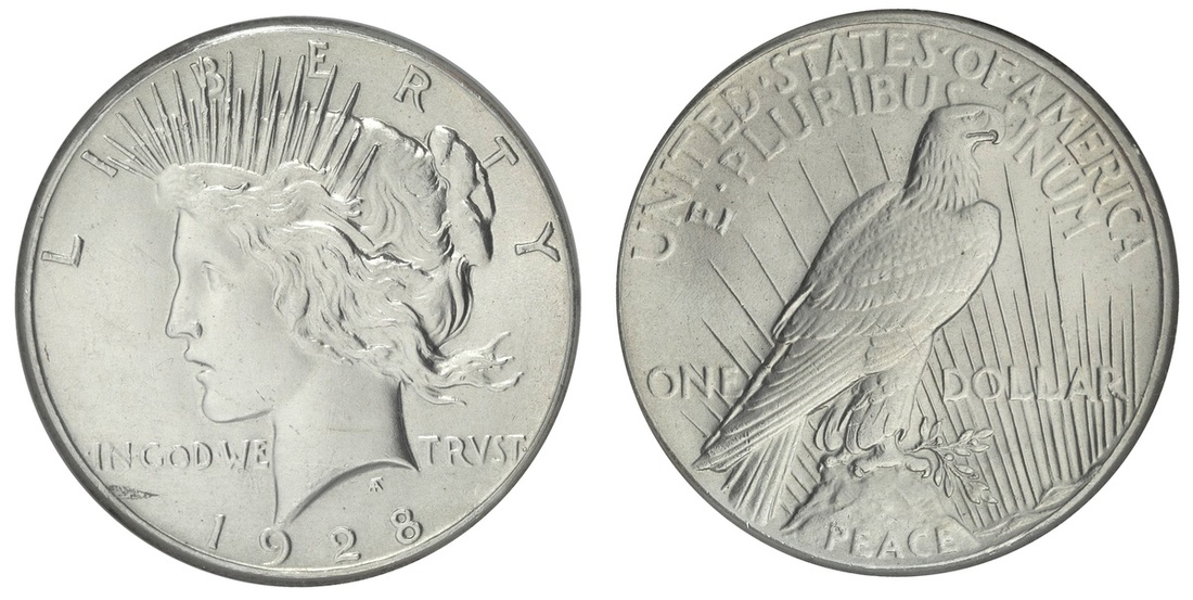 1928 Peace Dollar. NGC MS62. All white throughout.